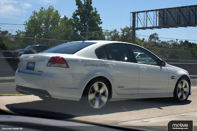 This thinly disguised Holden Commodore based Chevrolet with SS badgetry was spotted yesterday (July 12) just outside of San Diego, California. Practically, we’re talking about a sister model to the upcoming Pontiac G8 GT with the 362Hp 6.0-liter V8 unit. Unfortunately, GM people impolitely covered the nameplate of the Michigan plated Chevy mule so we can’t be sure of the model. While many of you would love this prototype to be the rear-wheel drive successor to the Impala SS, we’re betting it’s either the Brazilian Omega SS or (most probably) the Middle-Eastern market Lumina SS. -Click "Read More..." below for more images